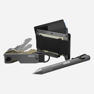Modern, RFID-blocking wallet, keycase and pen in Gunmetal.